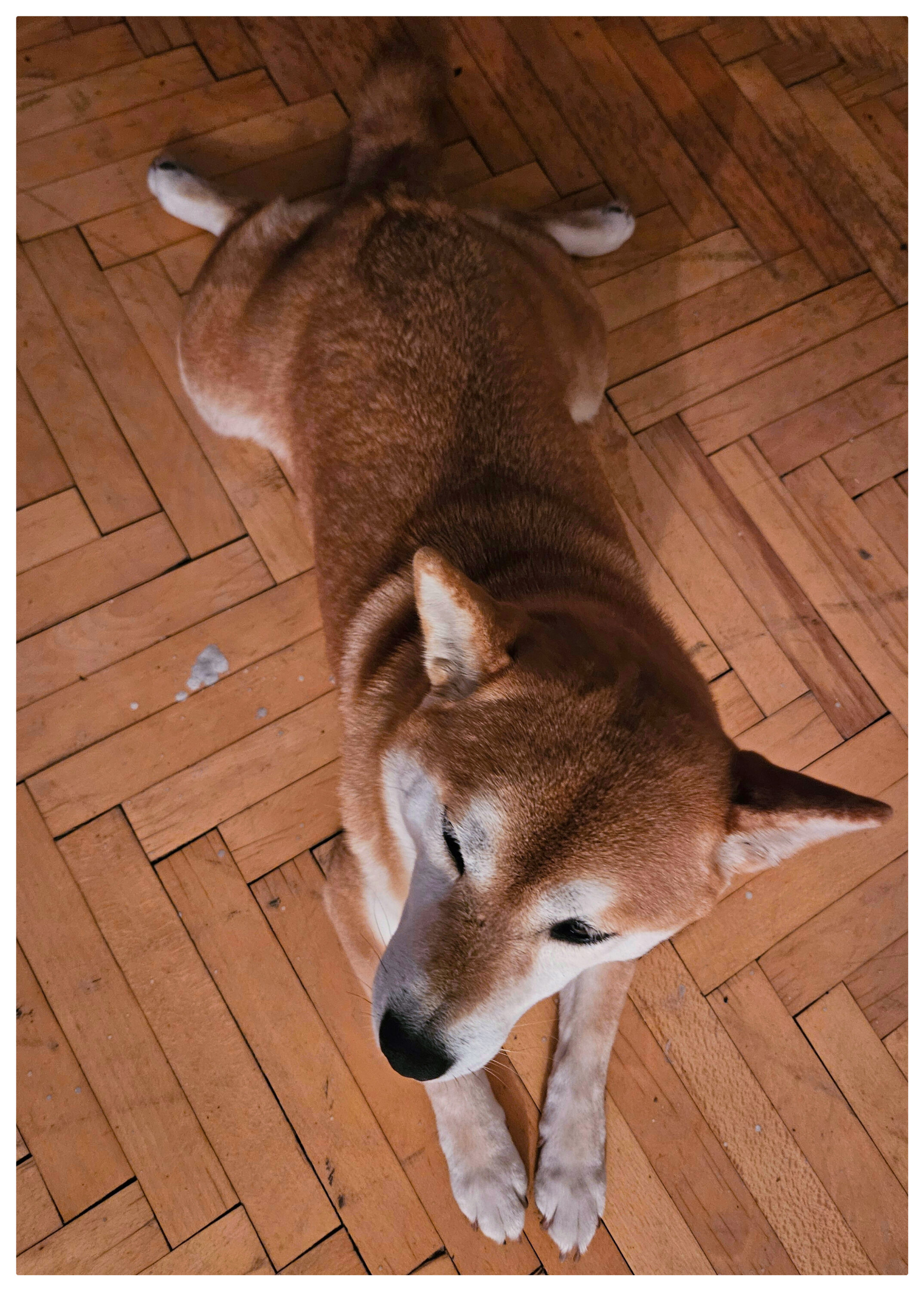 Parkiet w dobrym stanie, jedynie oczyścić, a Niura chyba testuje jak się na nim leży…